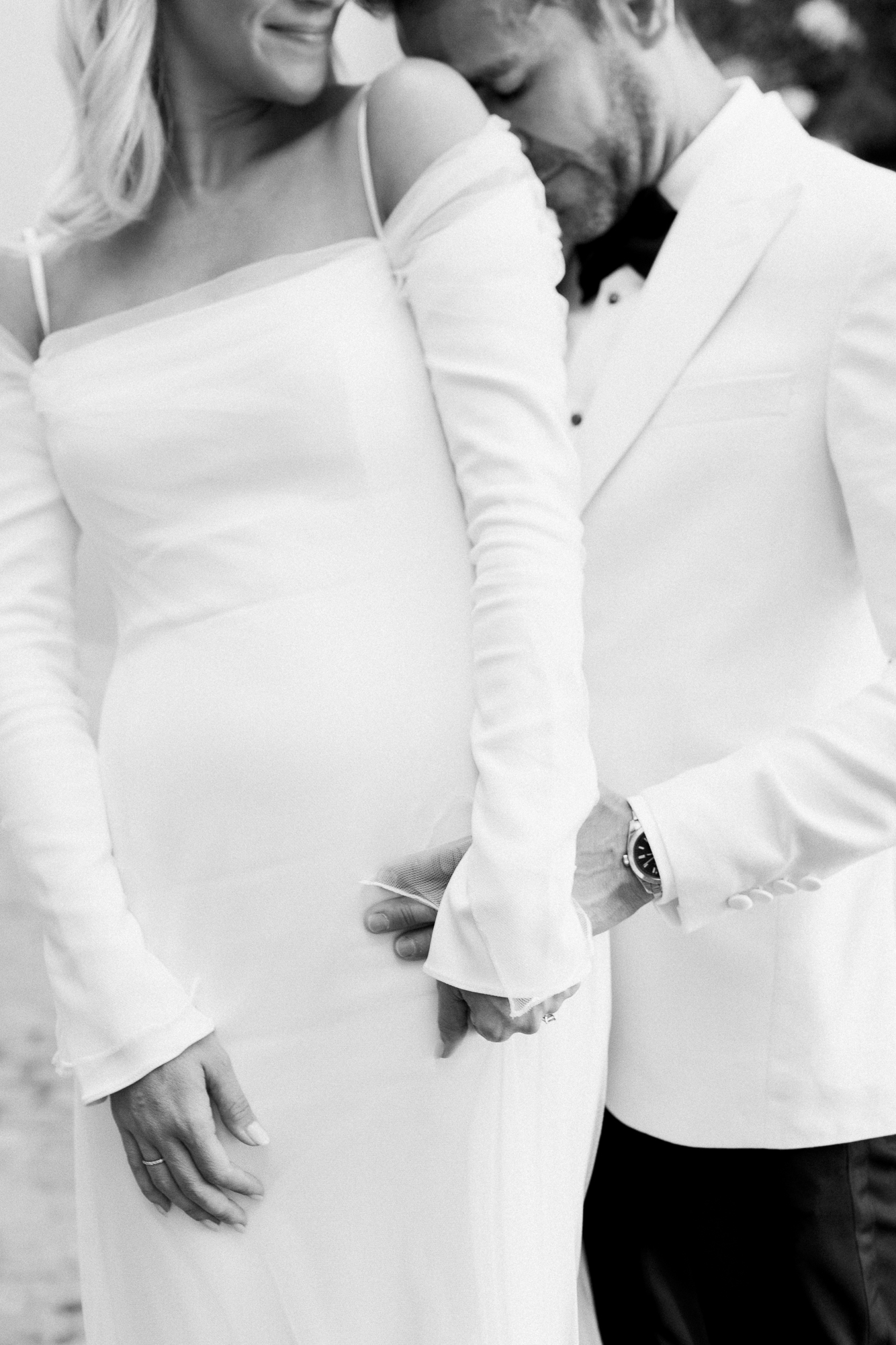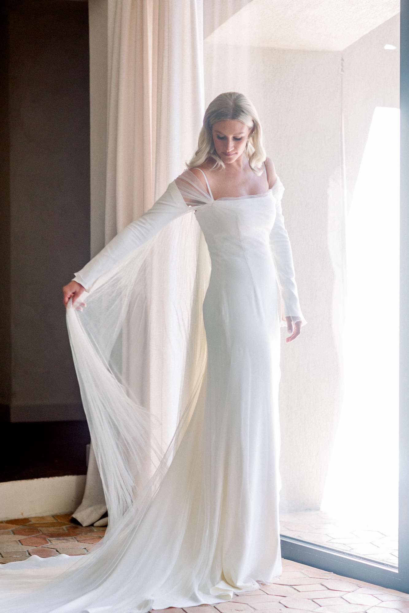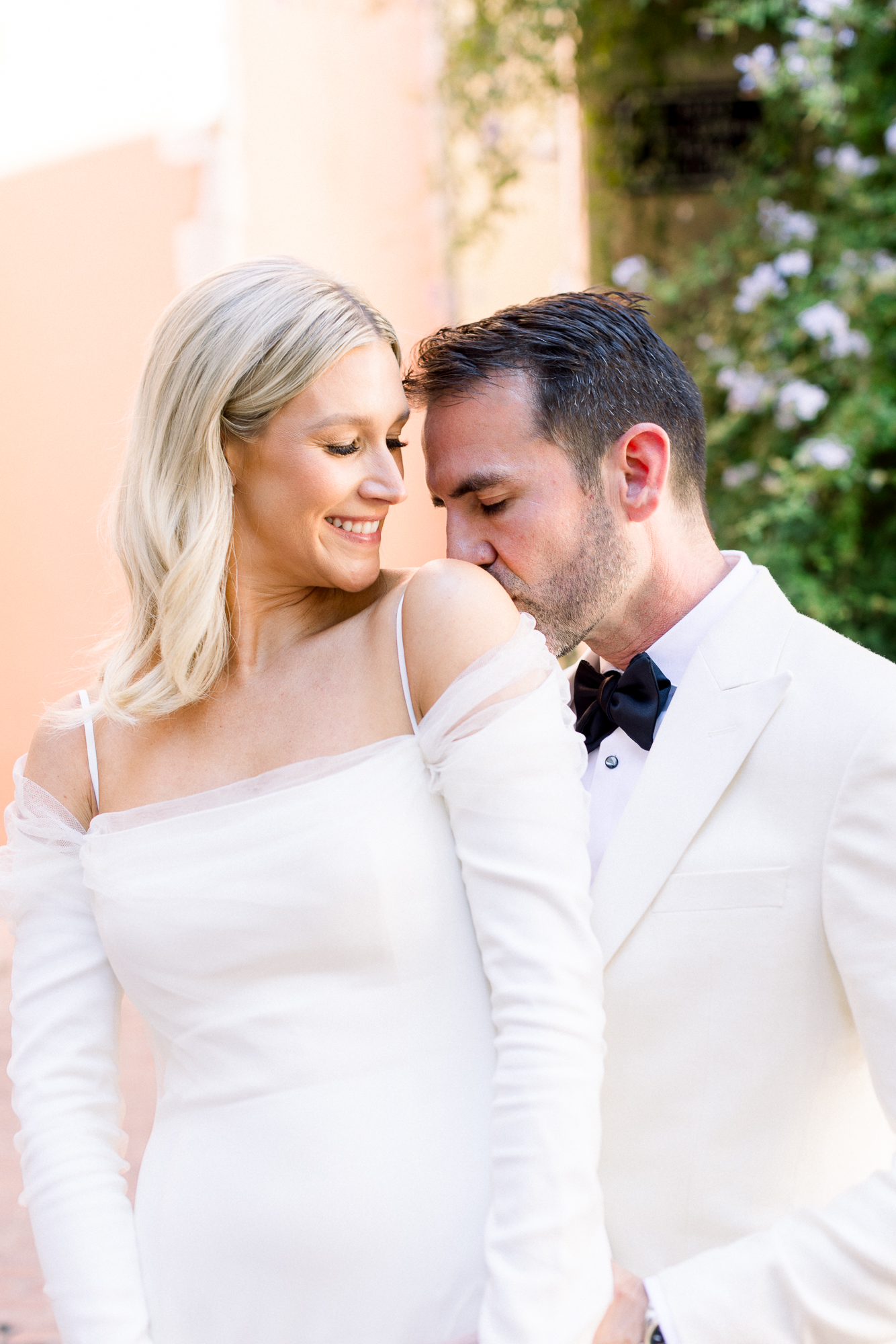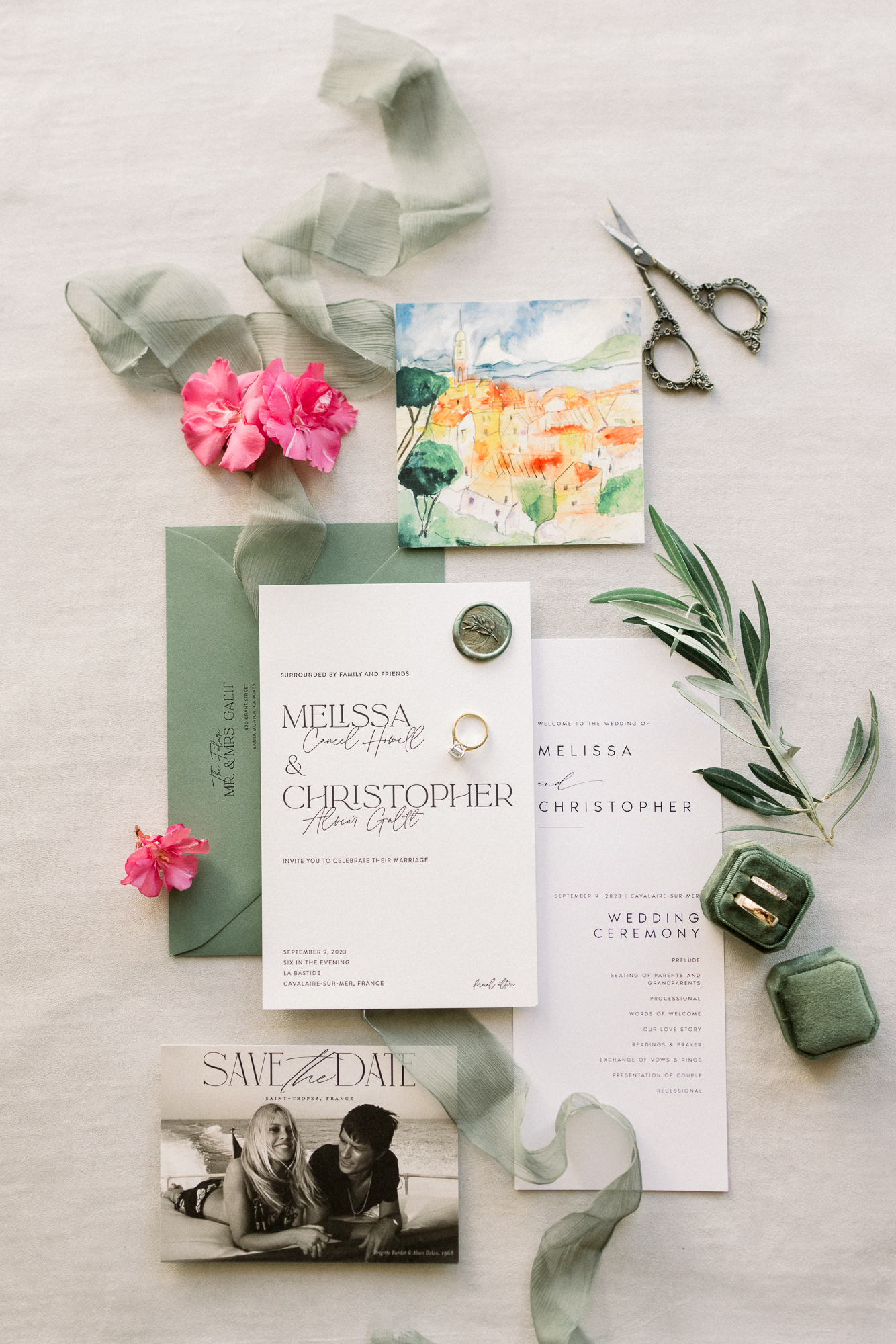 Le deuxième jour s’est ouvert par les préparatifs, rythmés par l’excitation et les derniers instants de calme avant la cérémonie. Nous avons ensuite réalisé un shooting de couple dans les rues de Saint-Tropez, entre façades pastel, ruelles ensoleillées et instants volés, capturant l’essence même du village et la spontanéité des mariés.