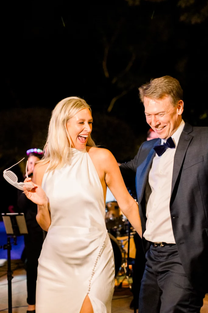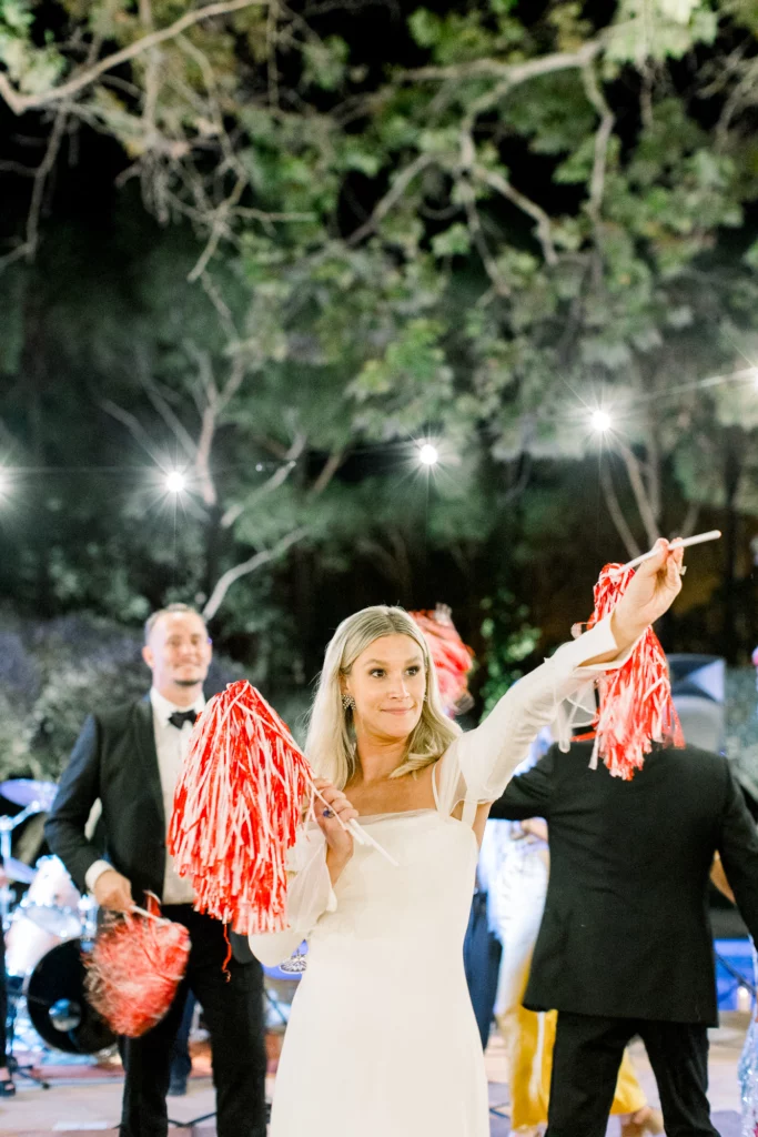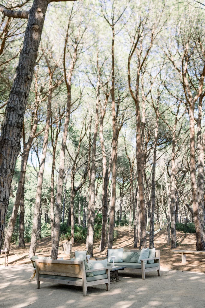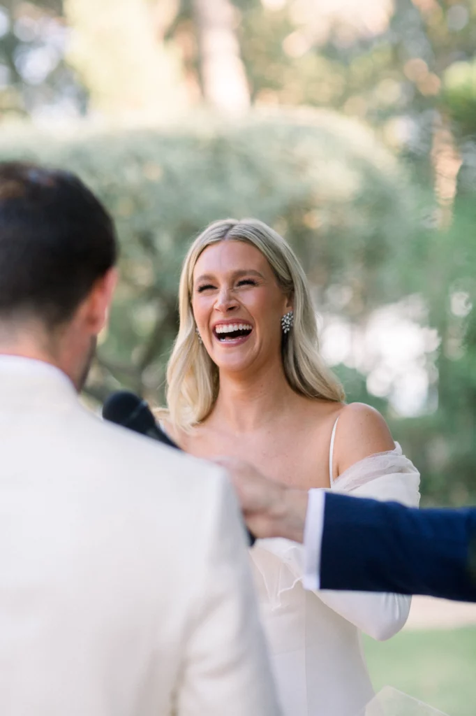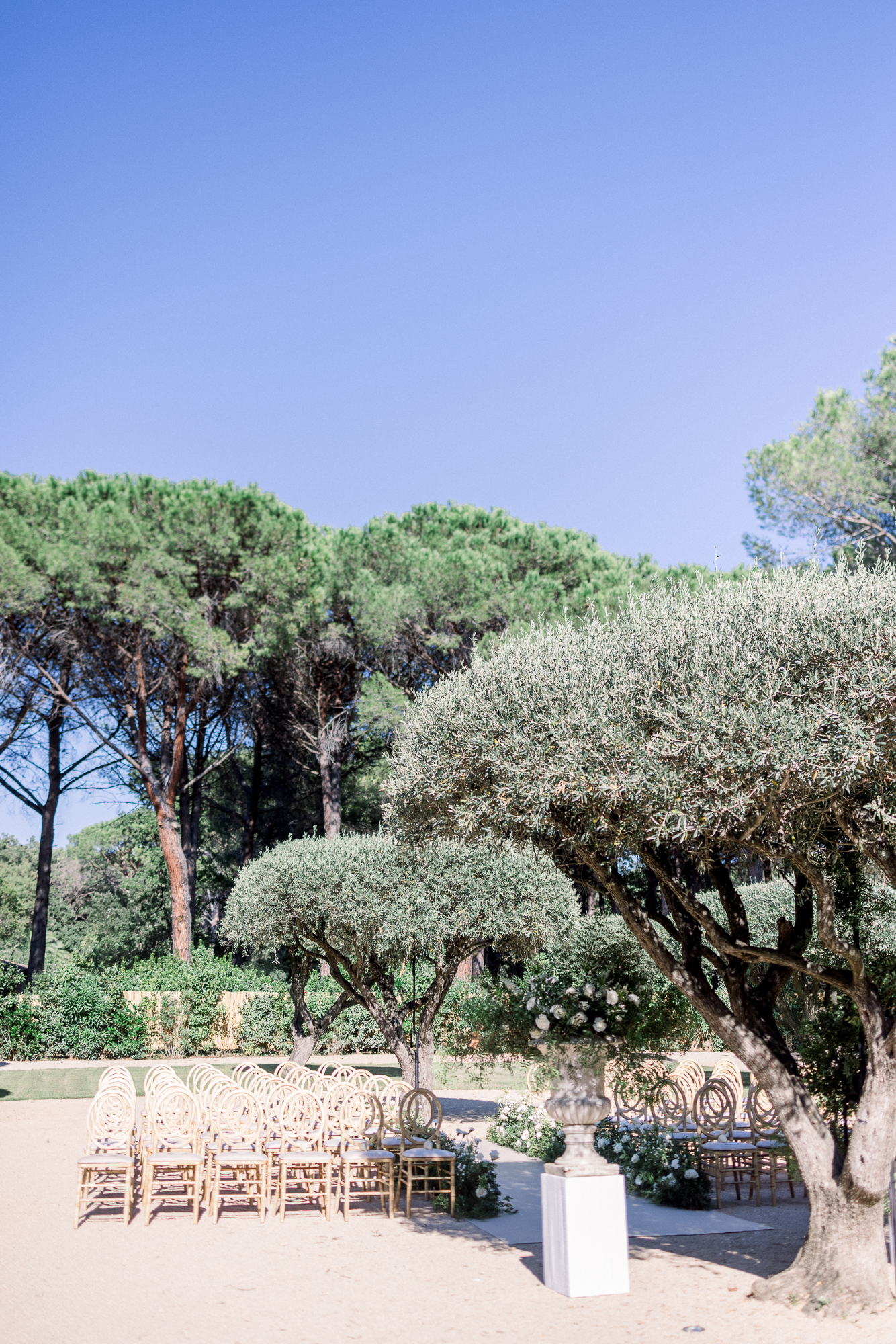 La cérémonie, célébrée sous les oliviers, offrait un cadre naturel et intemporel. Entourés de verdure et baignés de lumière, les vœux ont été échangés dans une ambiance profondément émouvante et sincère. La journée s’est prolongée par un dîner et une soirée en extérieur, entre longues tablées, rires, musique et danse sous le ciel étoilé de la Côte d’Azur.