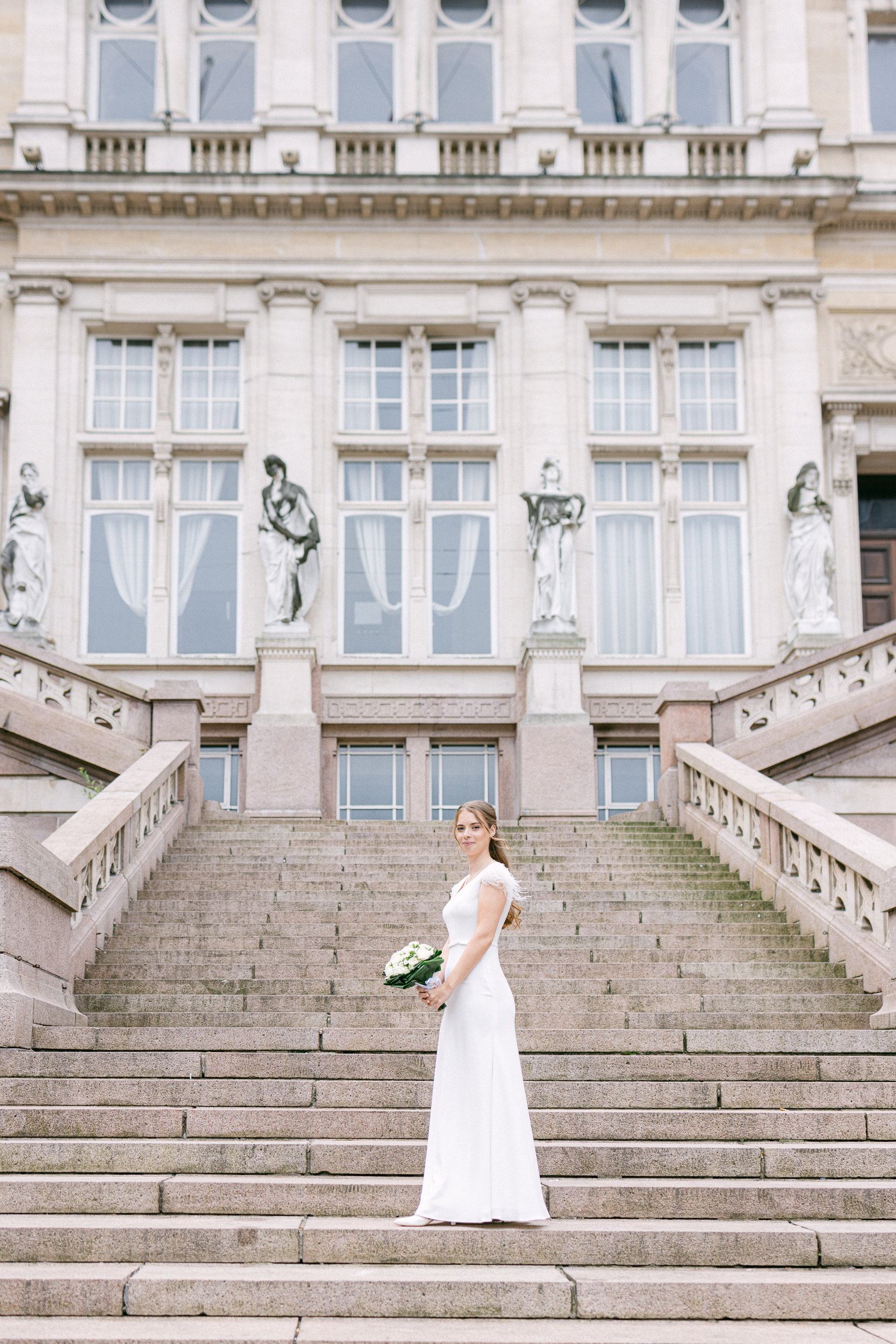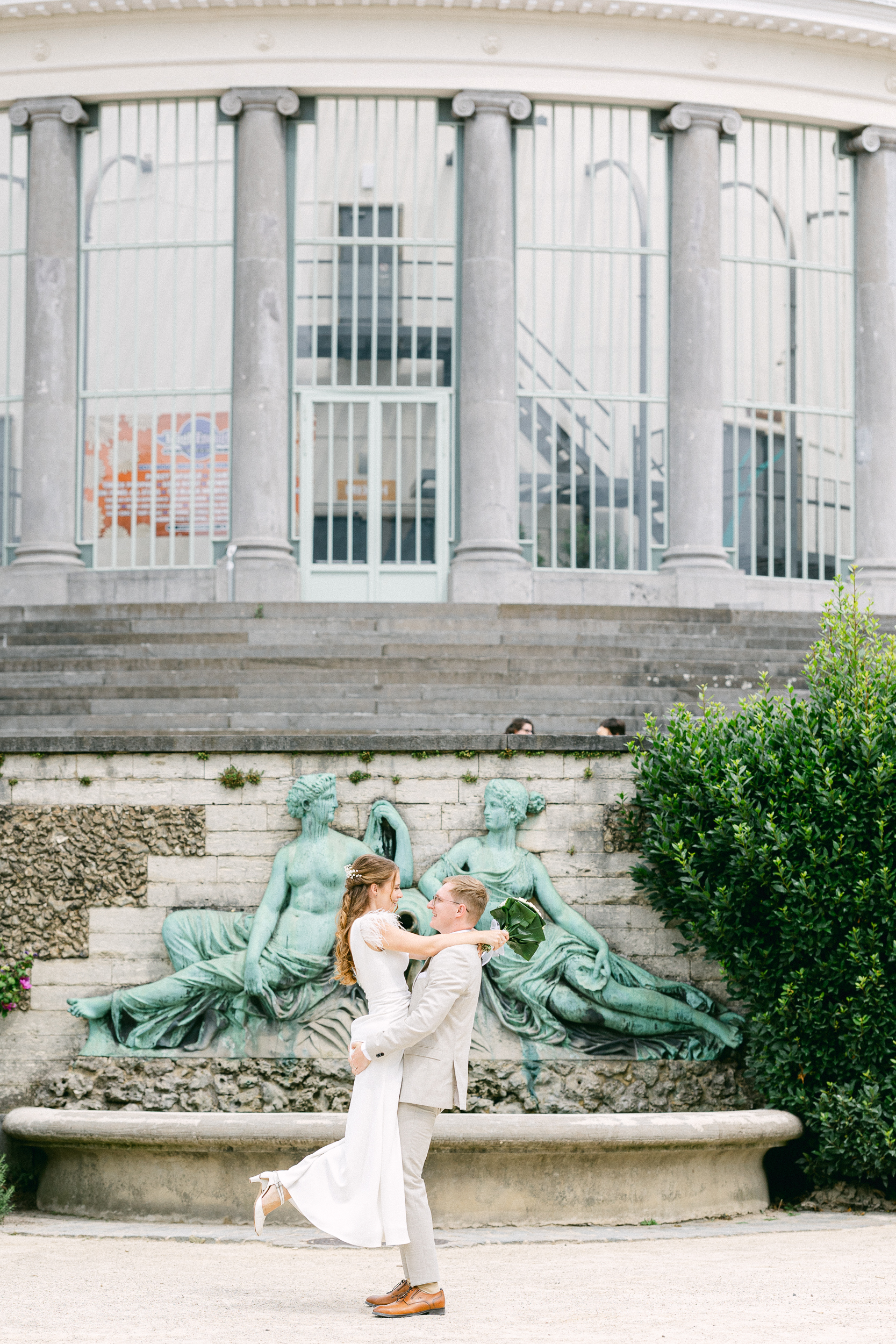 Après la cérémonie, nous avons pris le temps d’un shooting couple dans les rues de Bruxelles. Une parenthèse douce, loin de l’agitation, pour créer des images naturelles et spontanées, mettant en lumière la connexion du couple et l’élégance intemporelle de la ville.