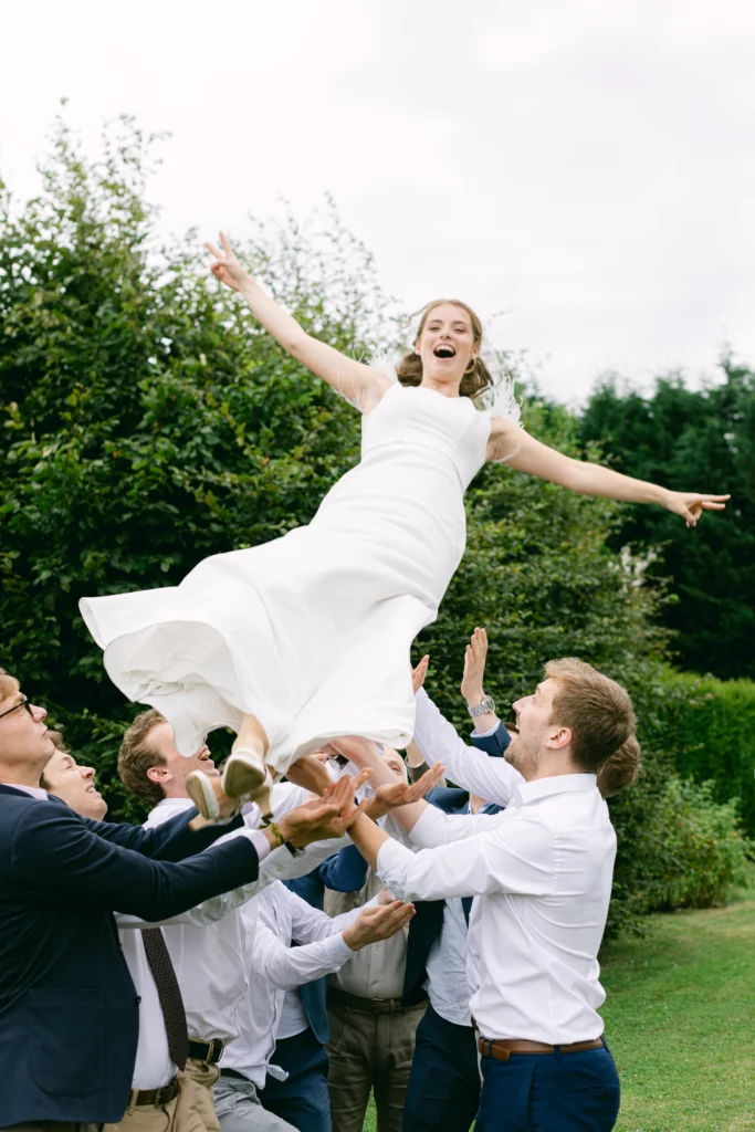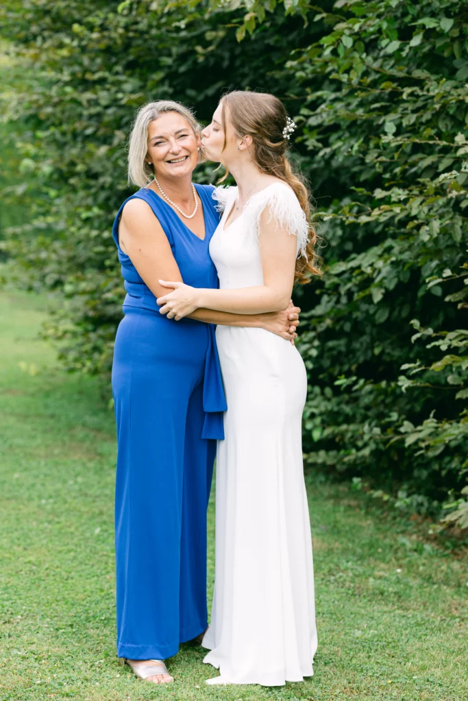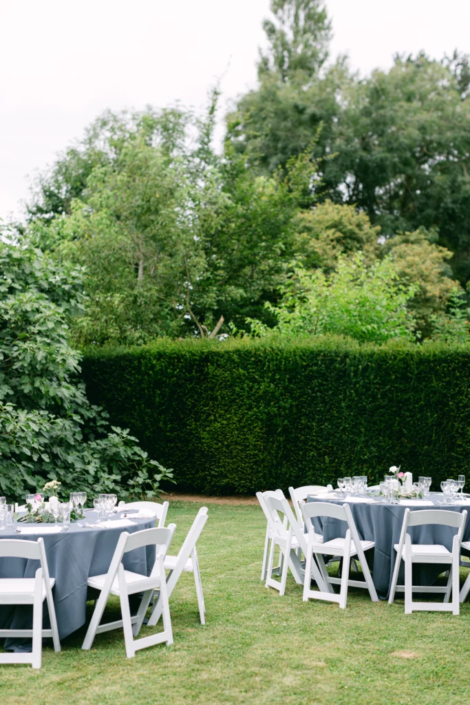 La journée s’est poursuivie à La Hulpe, dans le jardin de la maman de la mariée. Un lieu chargé d’histoire et d’émotions, transformé pour l’occasion en un espace de réception chaleureux et authentique. Sous les arbres, autour d’une grande table, le repas s’est déroulé dans une ambiance conviviale et sincère, où l’on célébrait avant tout l’amour, la famille et le temps partagé.